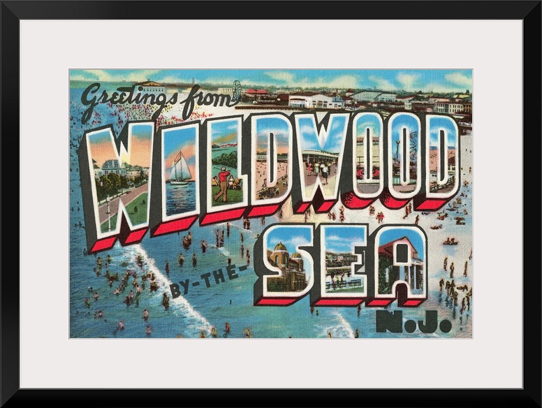 <p>Greetings from Wildwood-by-the-Sea, New Jersey large letter vintage postcard</p>