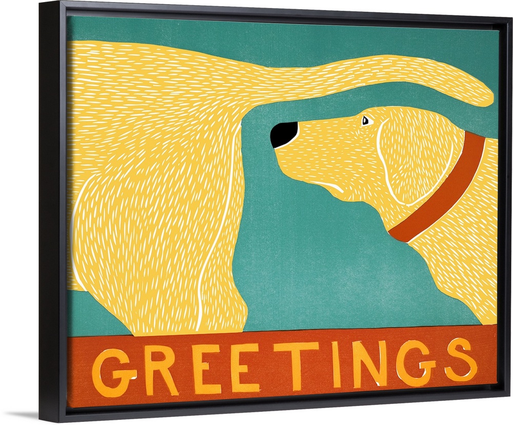<p>Illustration of a yellow lab sniffing another yellow lab's behind with the word "Greetings" written on the bottom.</p>