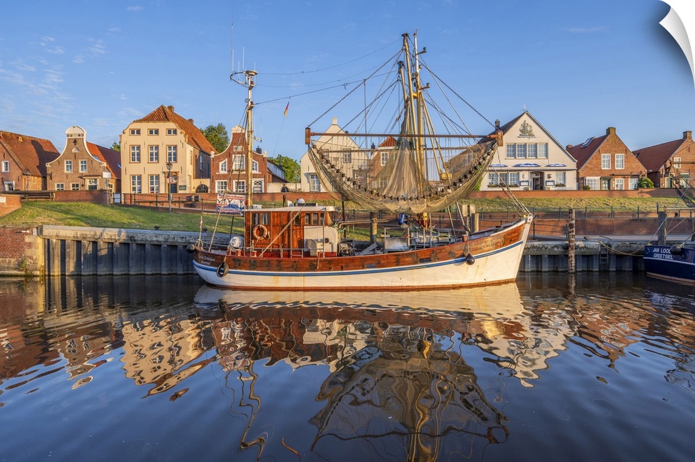 <p>Greetsiel harbor in early morning light, Krummhorn, East Frisia, Lower Saxony, Germany</p>