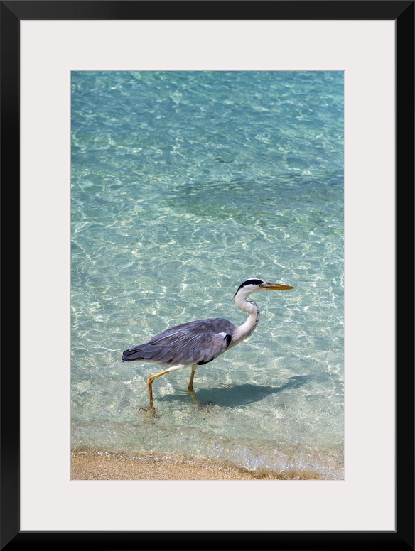 <p>Grey Heron (Maakana) on the shoreline of the lagoon on an exotic Island in The Maldives, Indian Ocean</p>