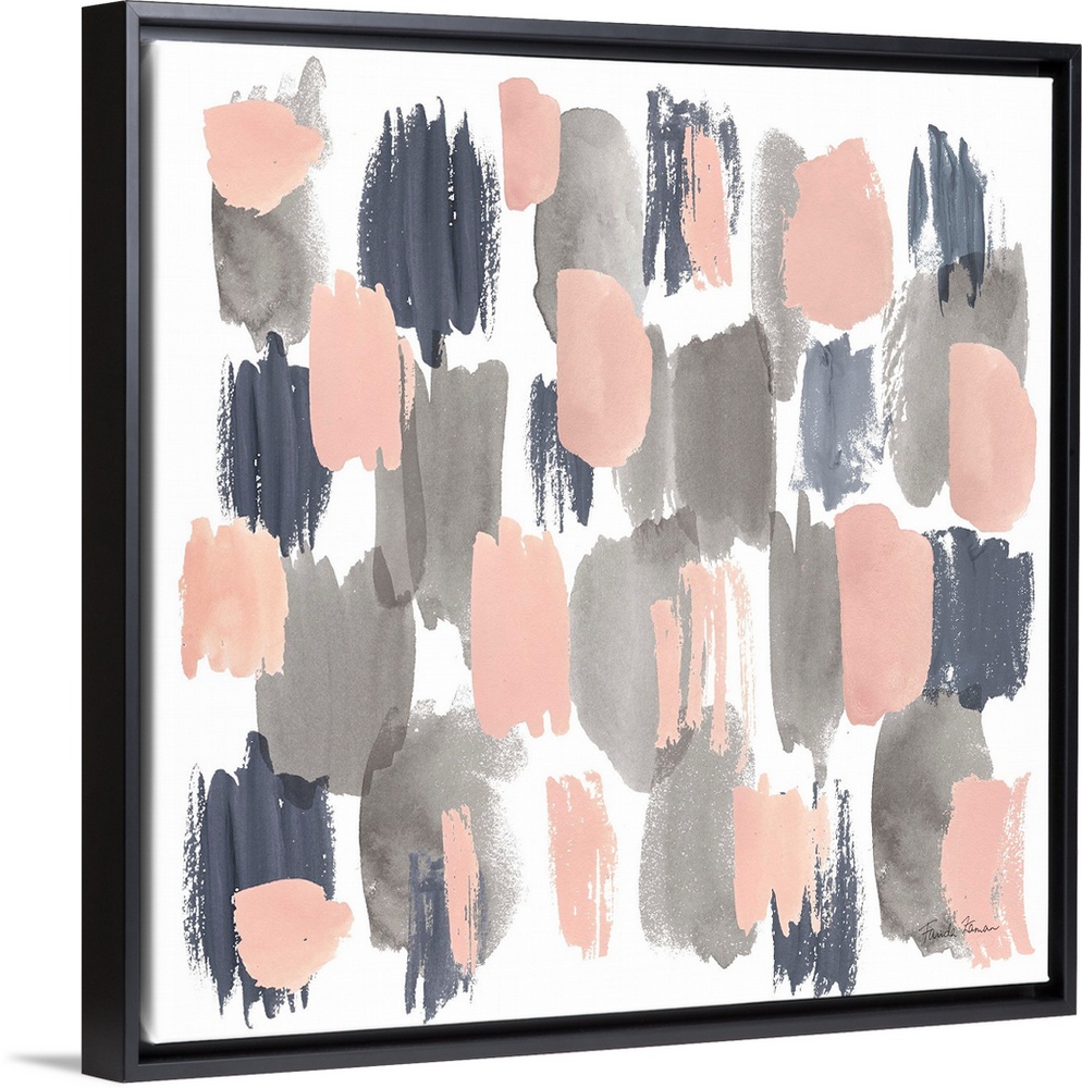 <p>Decorative artwork featuring short vertical brush strokes in gray, pink and subdued blue.</p>