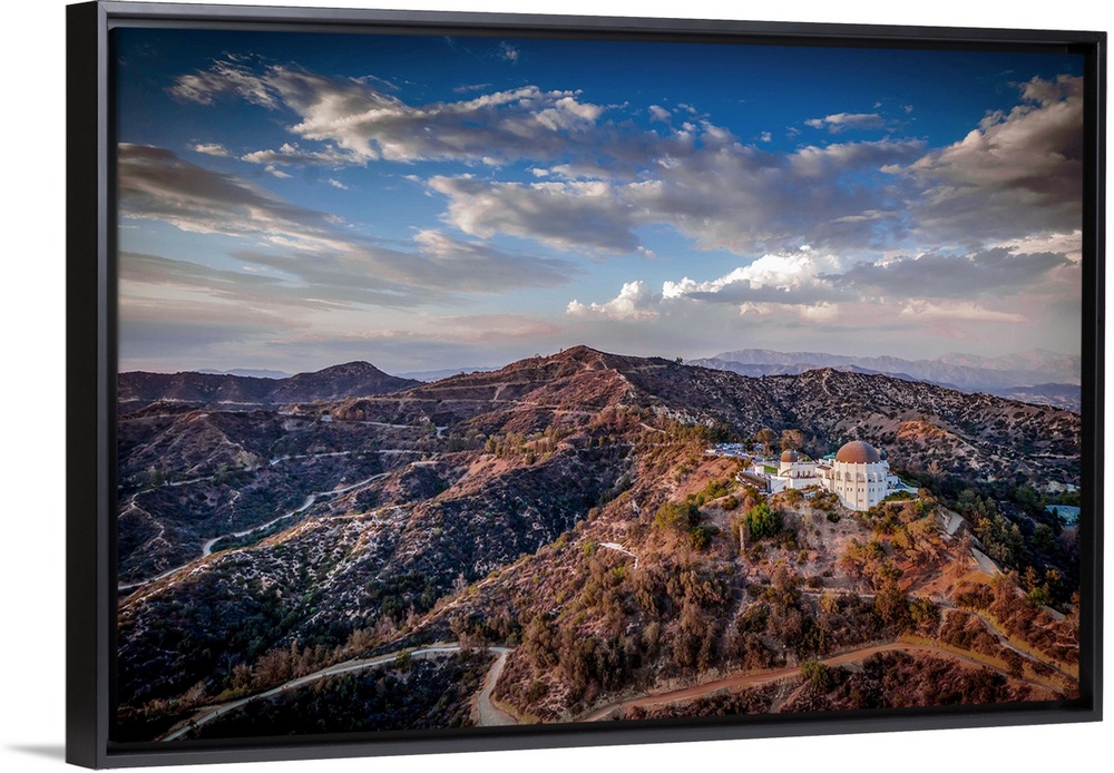 <p>Aerial view of the Griffith Observatory on the hills outside of Los Angeles, California, at sunset.</p>