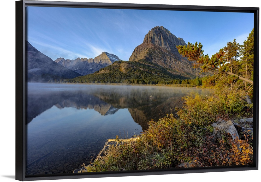 <p>USA, North America, Montana. Grinnell Point And Mt, Gould Reflection Into Swiftcurrent Lake In Early Autumn In Glacier National Park.</p>