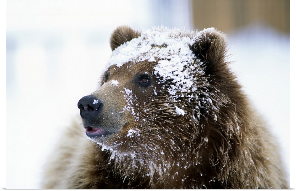 <p>Grizzly Bear Standing With Face Covered In Snow At The Alaska Wildlife Conservation Center In Alaska During Spring</p>