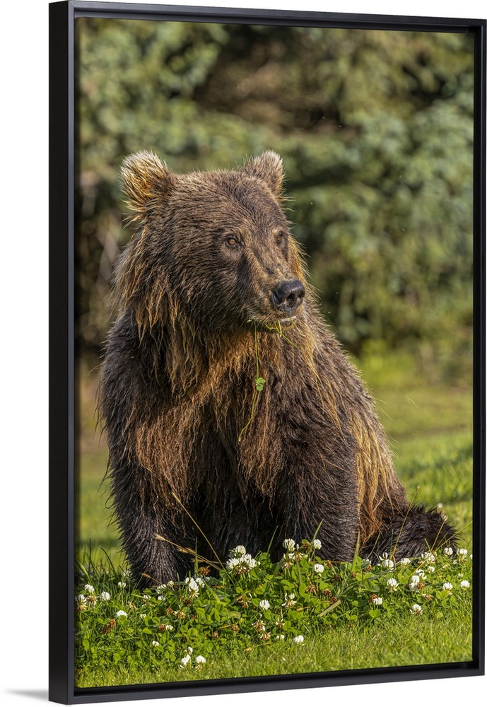 <p>Grizzly bear eating clover, Lake Clark National Park and Preserve, Alaska. United States, Alaska.</p>