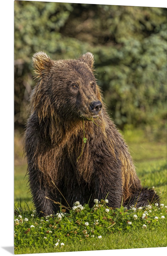 <p>Grizzly bear eating clover, Lake Clark National Park and Preserve, Alaska. United States, Alaska.</p>