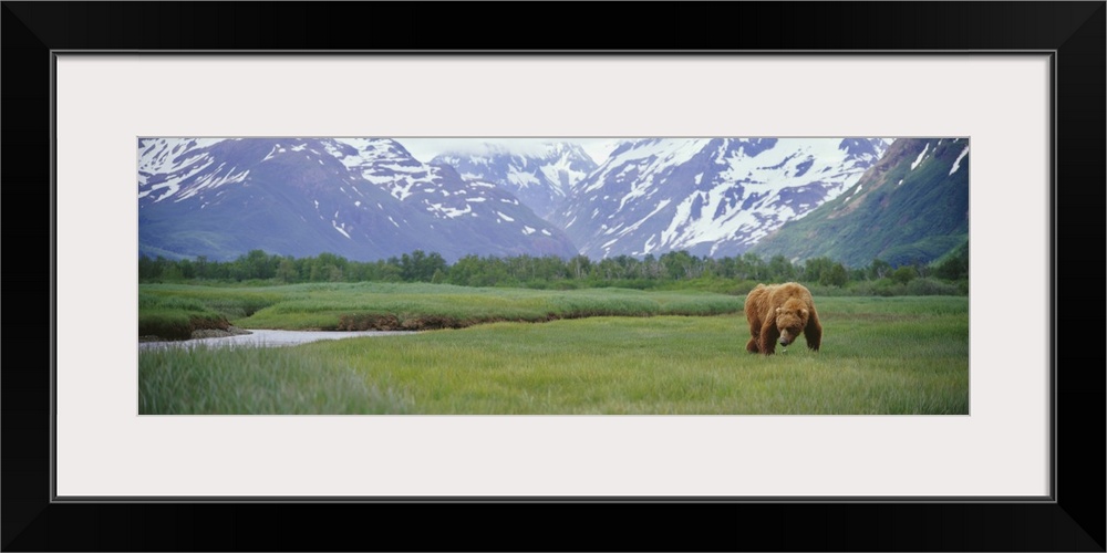 <p>An Alaskan Brown Bear foraging in a grassy meadow in Kukak Bay, Alaska.</p>