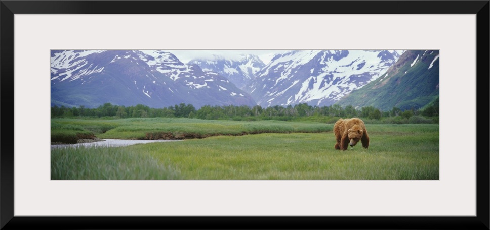 <p>An Alaskan Brown Bear foraging in a grassy meadow in Kukak Bay, Alaska.</p>