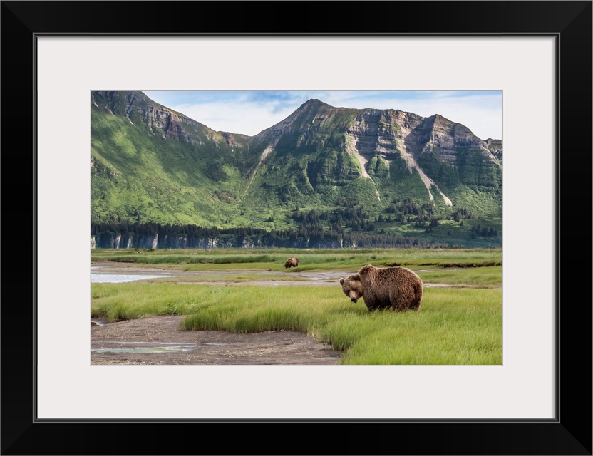<p>North America, USA, Alaska, Katmai National Park, Hallo Bay. Coastal Brown Bear, Grizzly, Ursus arctos. Grizzly bears eating sedges in a salt water marsh.</p>
