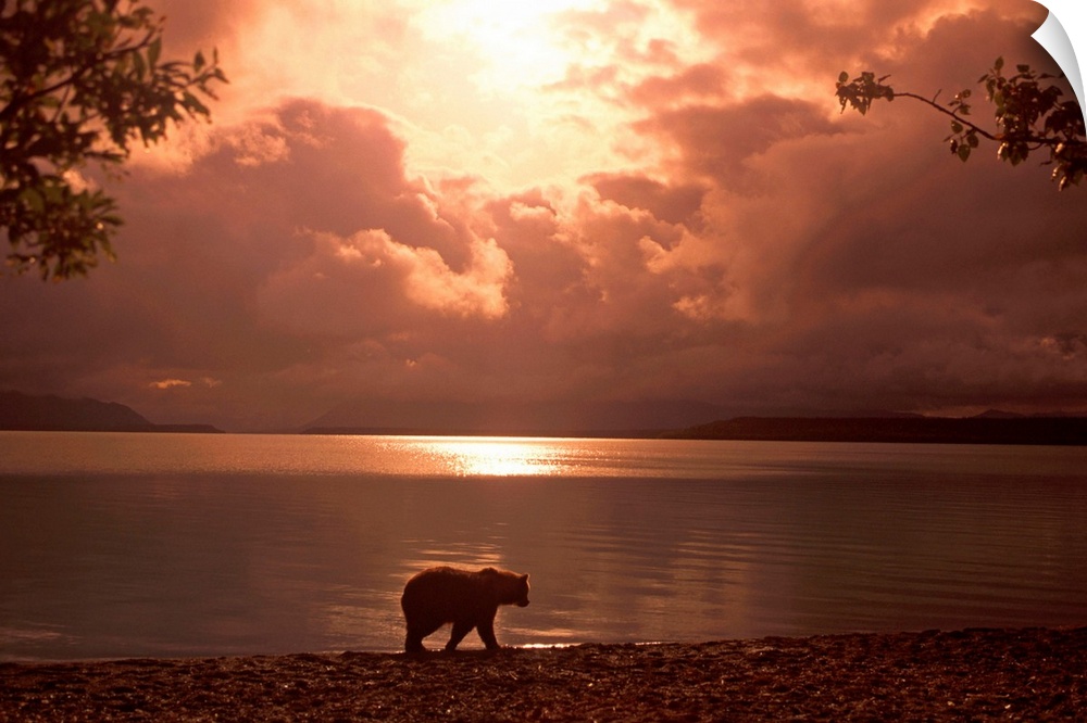 <p>Big photo on canvas of a bear walking along a water front.</p>