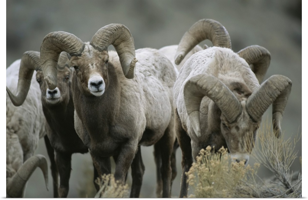 <p>Group of bighorn sheep rams in Yellowstone National Park, Montana, United States of America</p>