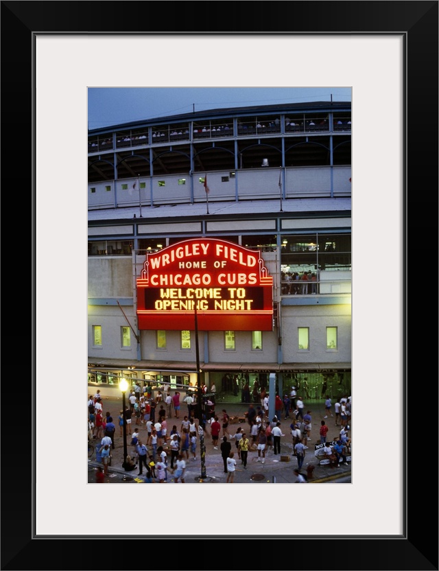 <p>Group of people in front of a baseball stadium, Wrigley Field, Chicago, Cook County, Illinois, USA</p>