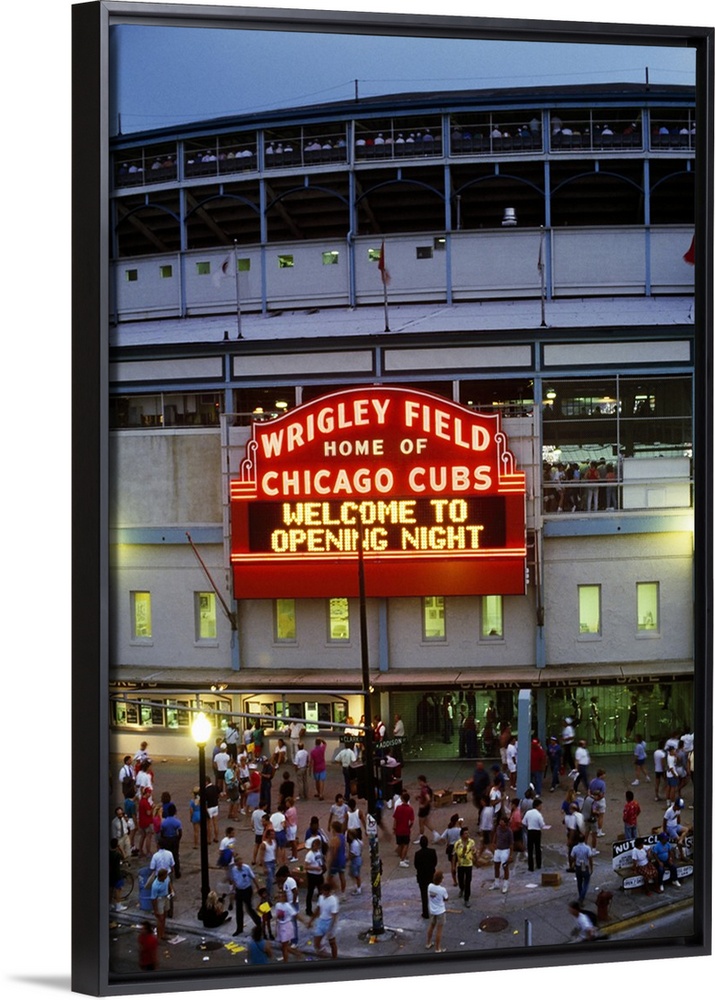 <p>Group of people in front of a baseball stadium, Wrigley Field, Chicago, Cook County, Illinois, USA</p>