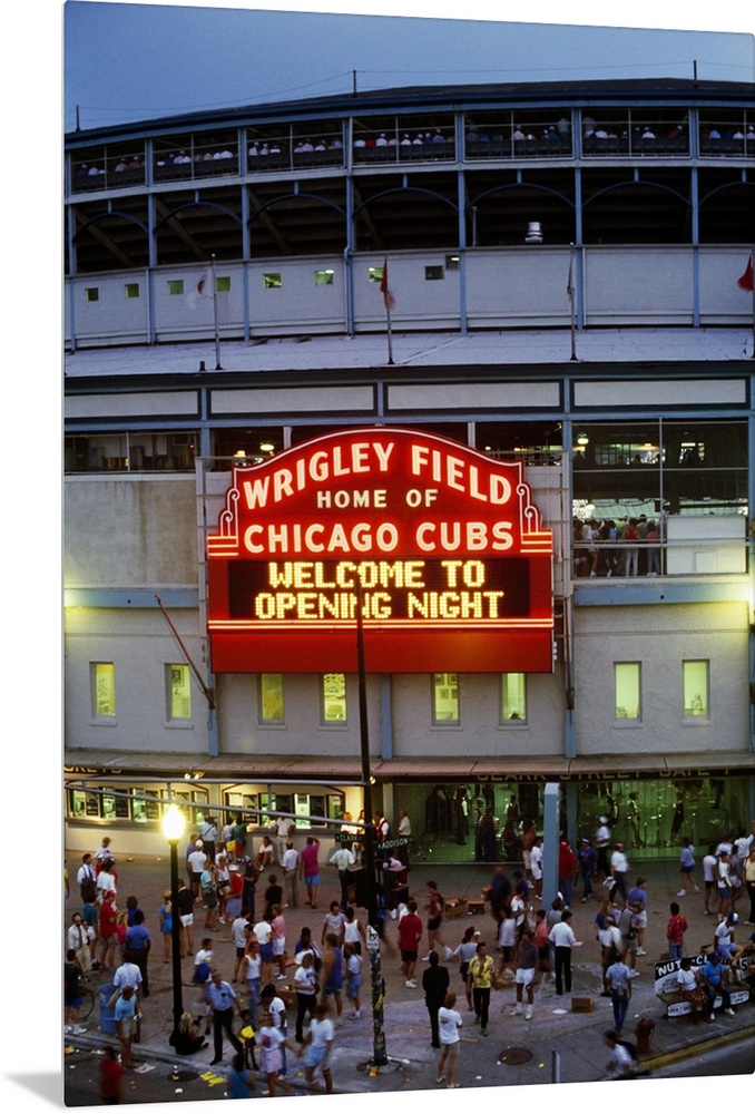 <p>Group of people in front of a baseball stadium, Wrigley Field, Chicago, Cook County, Illinois, USA</p>