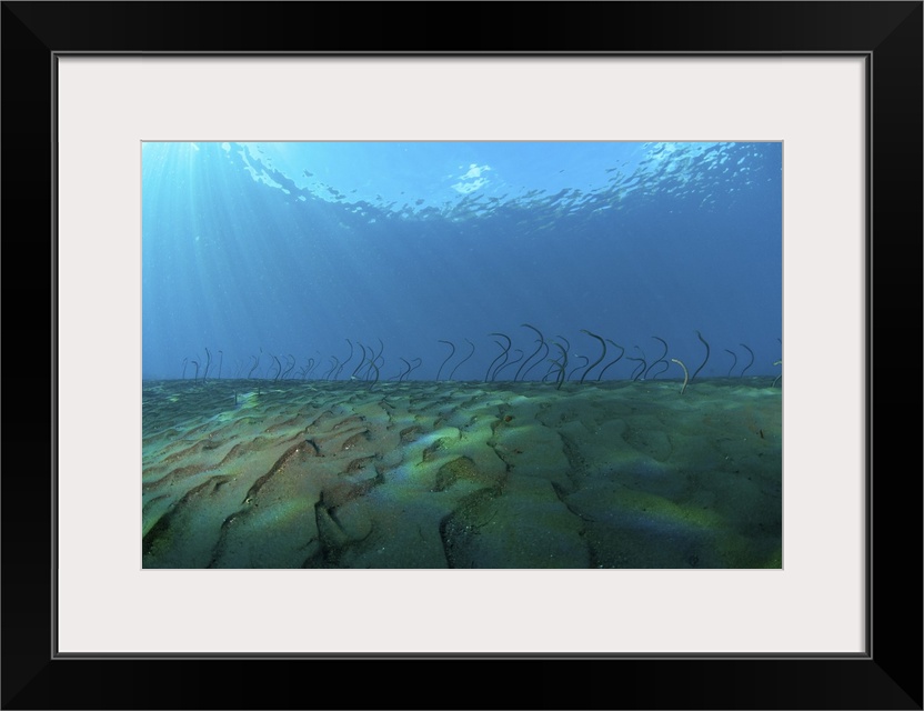 <p>Group of undulating garden eels in morning sun rays, Bali, Indonesia.</p>