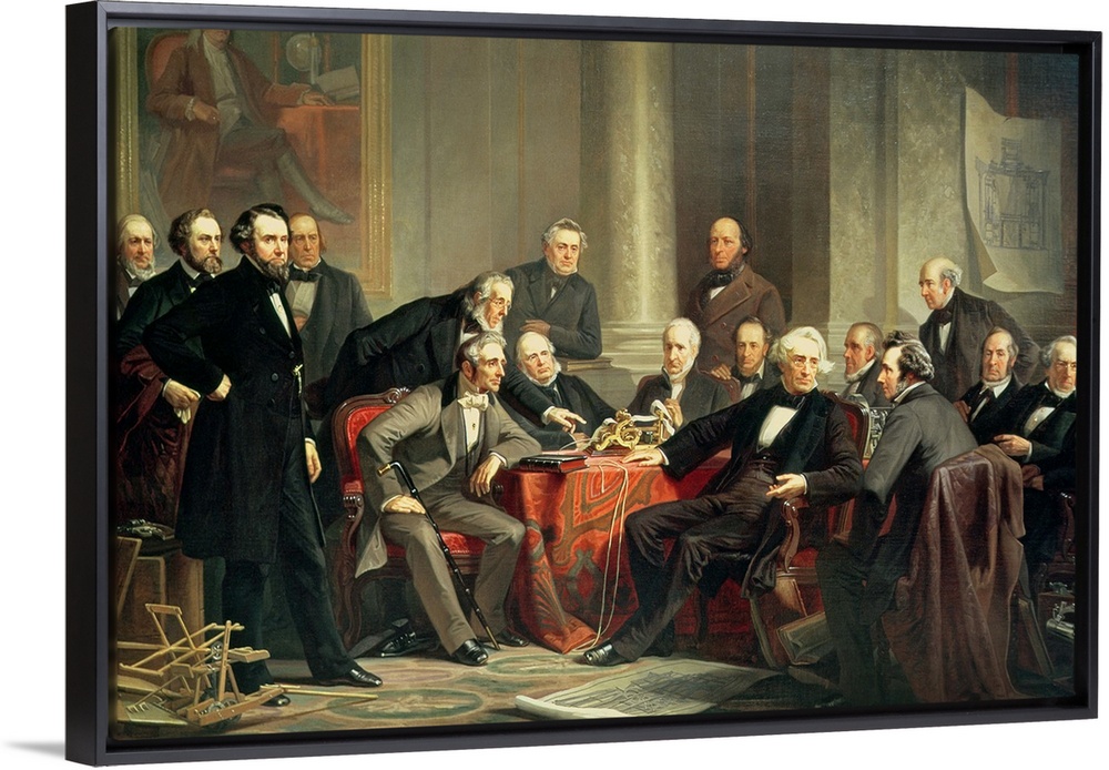 <p>XTD68566 Men of Progress: group portrait of the great American inventors of the Victorian Age, 1862 (oil on canvas) by Schussele, Christian (c.1824-79); Smithsonian Institution, Washington DC, USA; (add. info.: Jordan Mott Peter Cooper (1791-1883); they never actually met in one place); American, out of copyright</p>