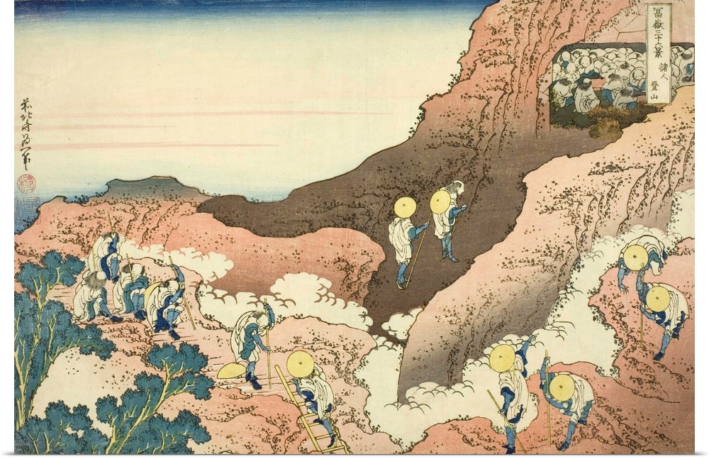 <p>Groups of Mountain Climbers, Shojin tozan, from the series Thirty-Six Views of Mount Fuji, Fugaku sanjurokkei, c.1830-33, colour woodblock print.</p>