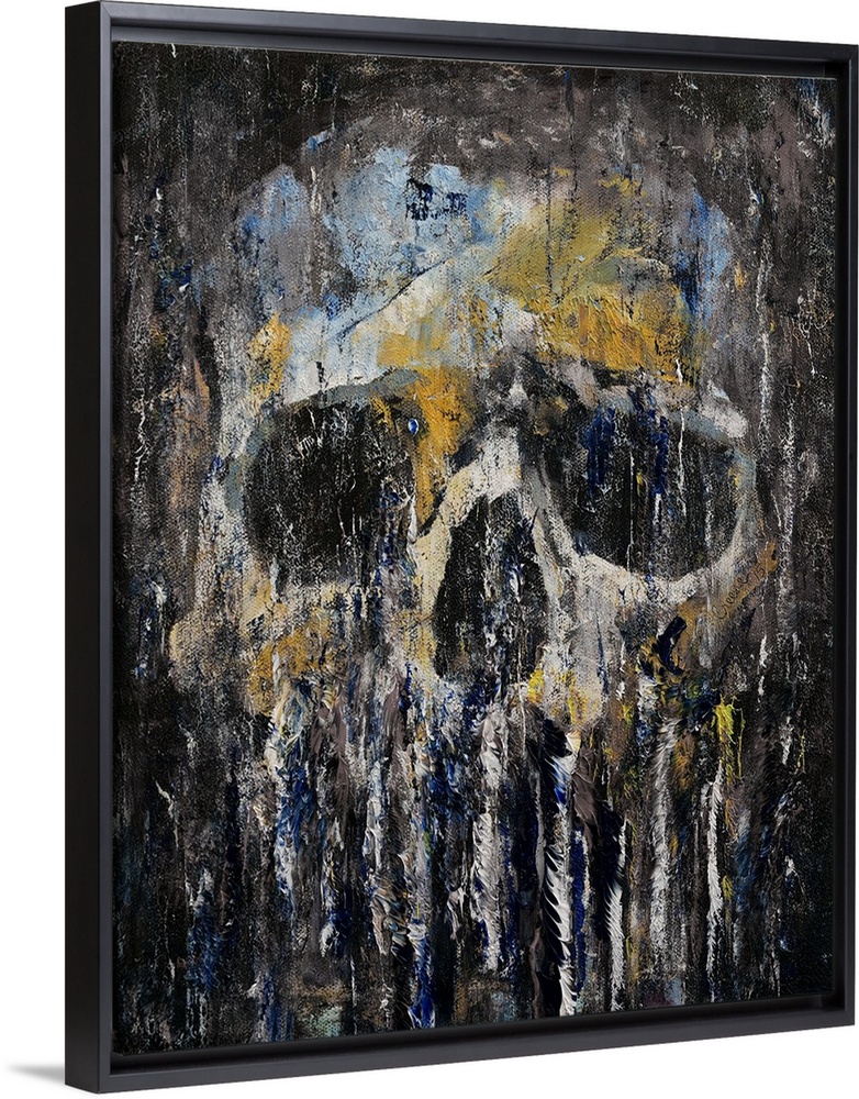 <p>A contemporary painting of a human skull dripping against a black background.</p>