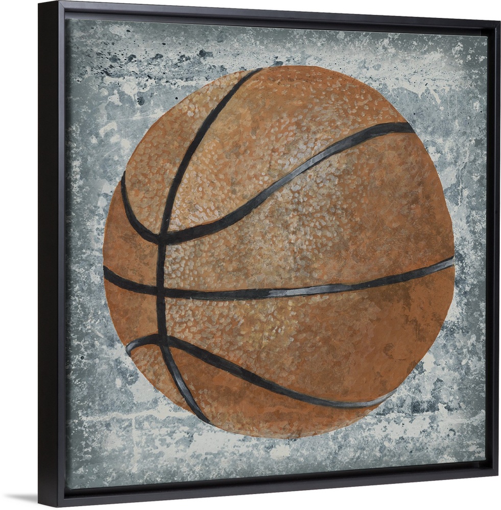 <p>Square sports decor with an illustration of a basketball on a gray and white textured background.</p>