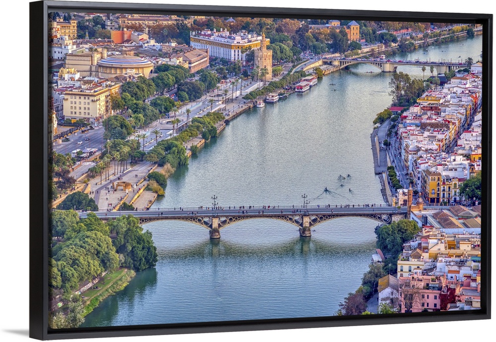 <p>Aerial view of Triana (foreground) and San Telmo (background) bridges over the Guadalquivir river, Seville, Spain.</p>