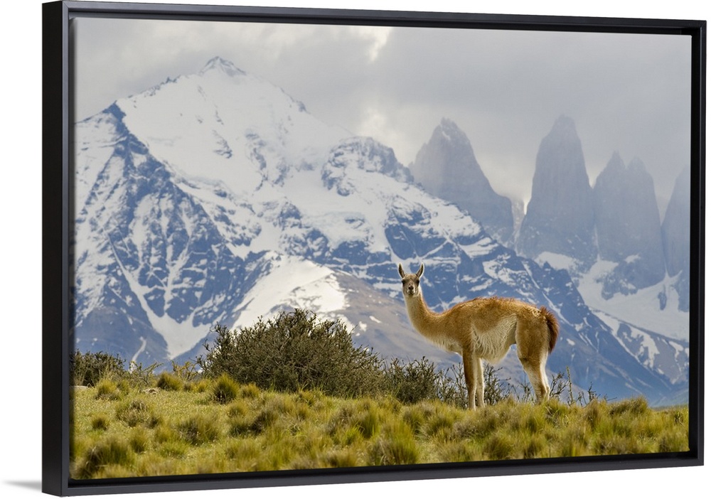 <p>Guanaco with Paine Towers in background, Torres Del Paine National Park, Region 12, Chile, Patagonia.</p>