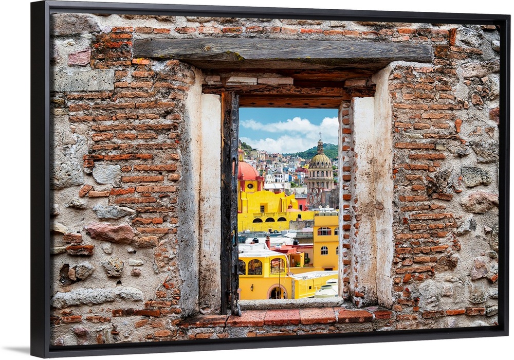 <p>View of the colorful city of Guanajuato framed through a stony, brick window. From the Viva Mexico Window View.</p>
