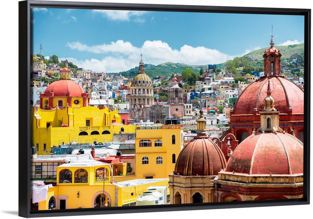 <p>Photograph of a cityscape in Guanajuato, Mexico, highlighting the colorful buildings and church domes. From the Viva Mexico Square Collection.</p>