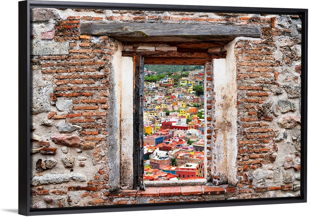 <p>View of the colorful city of Guanajuato framed through a stony, brick window. From the Viva Mexico Window View.</p>