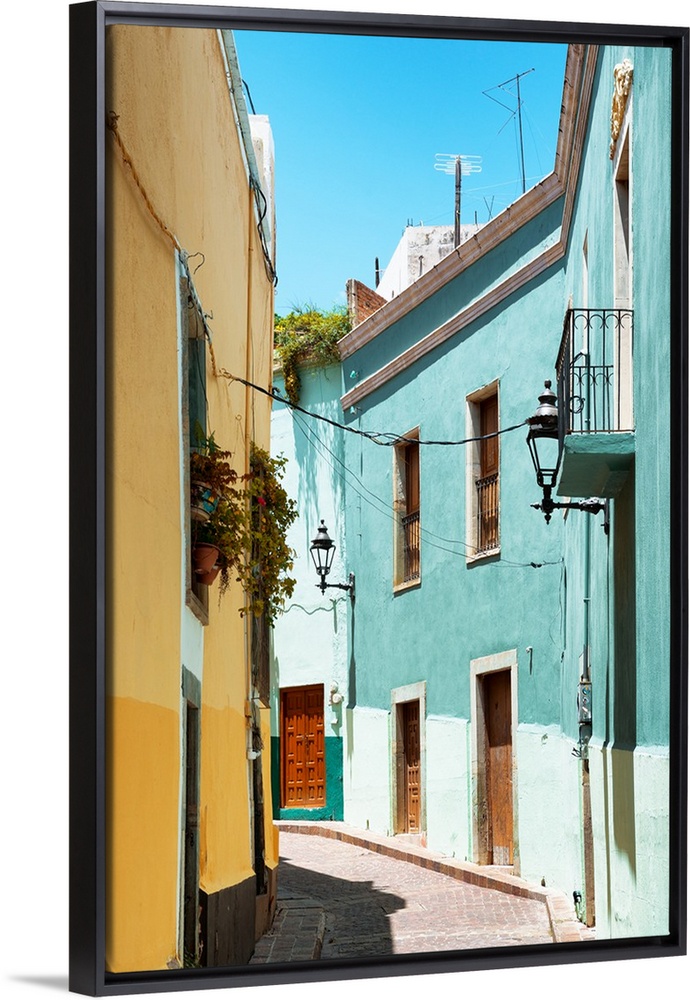 <p>Photograph of a pastel colored streetscape in Guanajuato, Mexico. From the Viva Mexico Collection.</p>