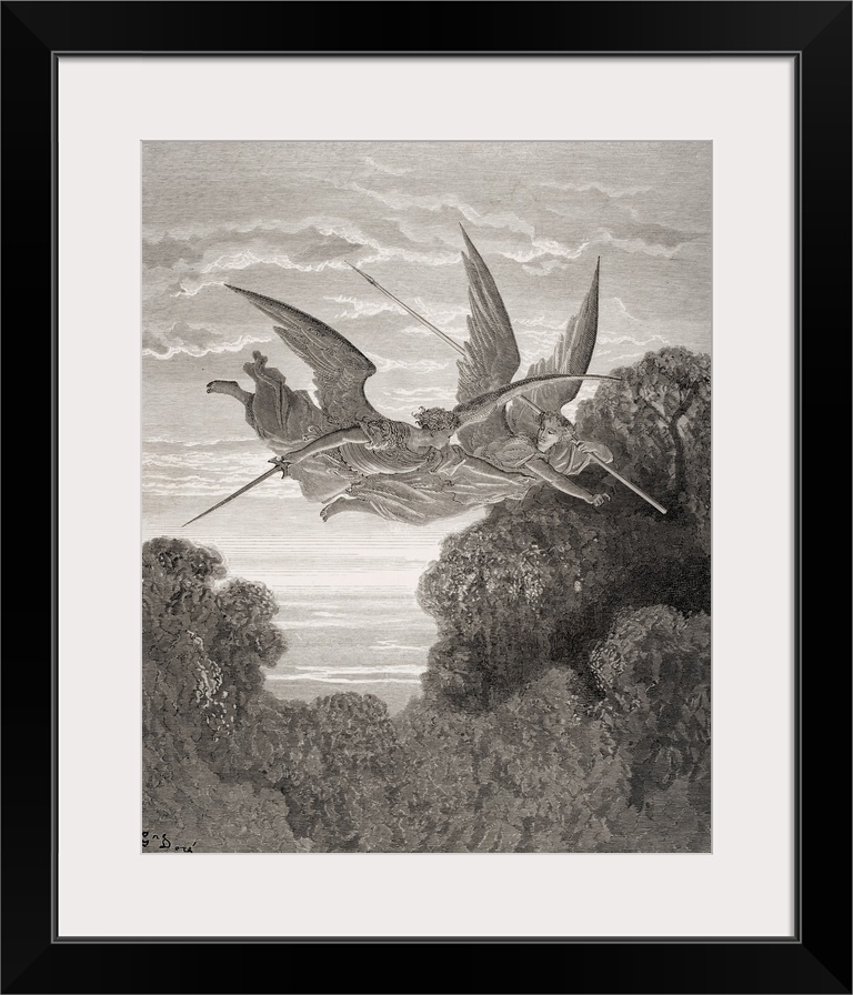 <p>Engraving By Gustave Dore, 1832-1883, French Artist And Illustrator, For Paradise Lost By John Milton, Book IV, Lines 798 And 799. Guardian Angels Zephon And Ithuriel.</p>