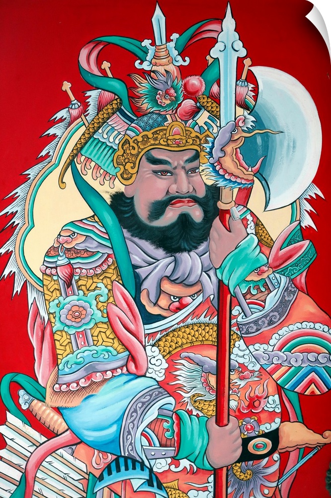 <p>Guardian figure paintings on gate, Hoi Tuong Te Nguoi Hoa Buddhist Chinese temple, Phu Quoc, Vietnam, Indochina, Southeast Asia, Asia.</p>