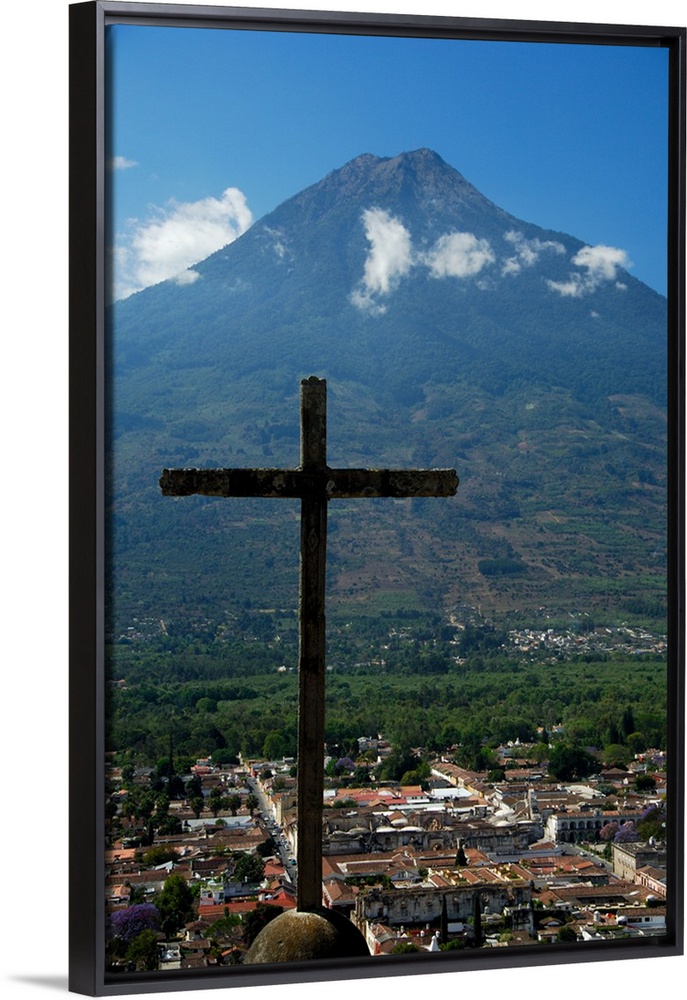 <p>Central America, Guatemala, Antigua, Hill of the Cross, aka Cross Hill or mountain. Mountain top view of the City of Antigua with Agua Volcano in the distance.</p>