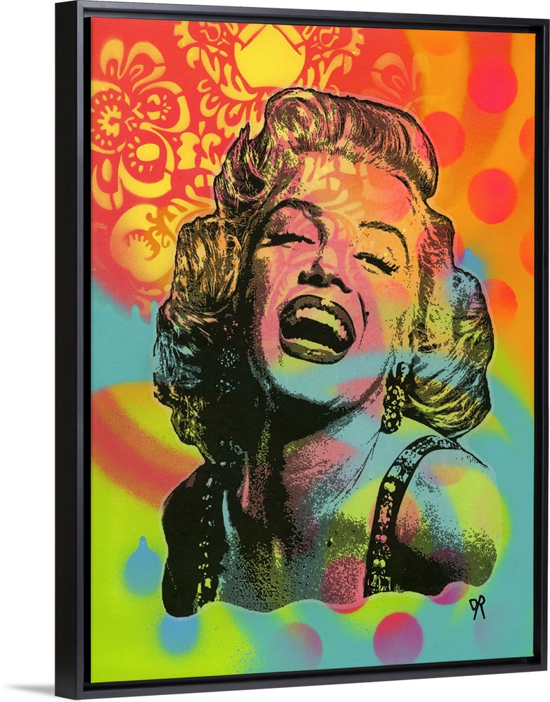 <p>Pop art style illustration of Marilyn Monroe with a playful and vibrant spray painted background.</p>