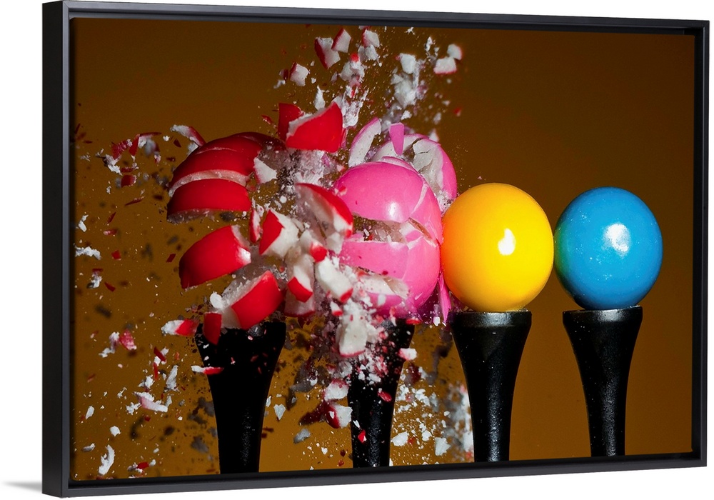 <p>A row of candy gumballs are demolished by a pellet.</p>