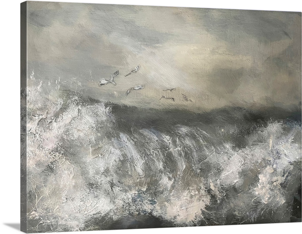 Art Coastal Contemporary Art Grey Wall Art Beaches Seascapes Painting Wave Bird