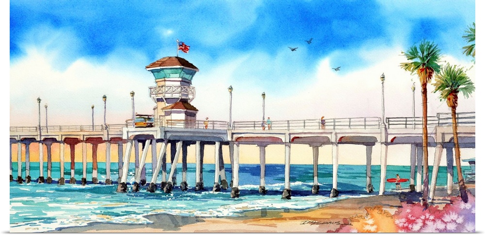 Art Decorative Art Bill Drysdale Landscapes Beaches Docks and Piers Painting California Watercolor