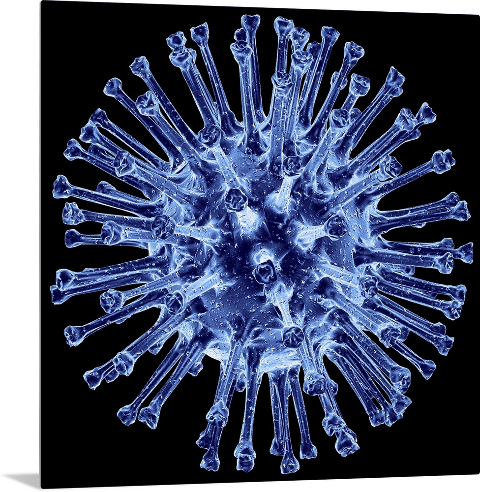 <p>H1N1 flu virus particle. Computer artwork of an H1N1 influenza A (flu) virus particle (virion). In the particle's lipid envelope (purple) are two types of protein spike, haemagglutinin (H) and neuraminidase (N), which determine the strain of virus. These are used for recognising and binding to the host cell.</p>