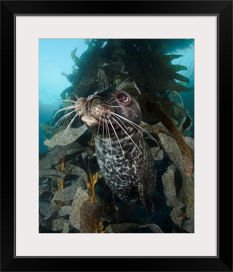 <p>Habor seal in kelp, Todos Santos Island west of Mexico.</p>