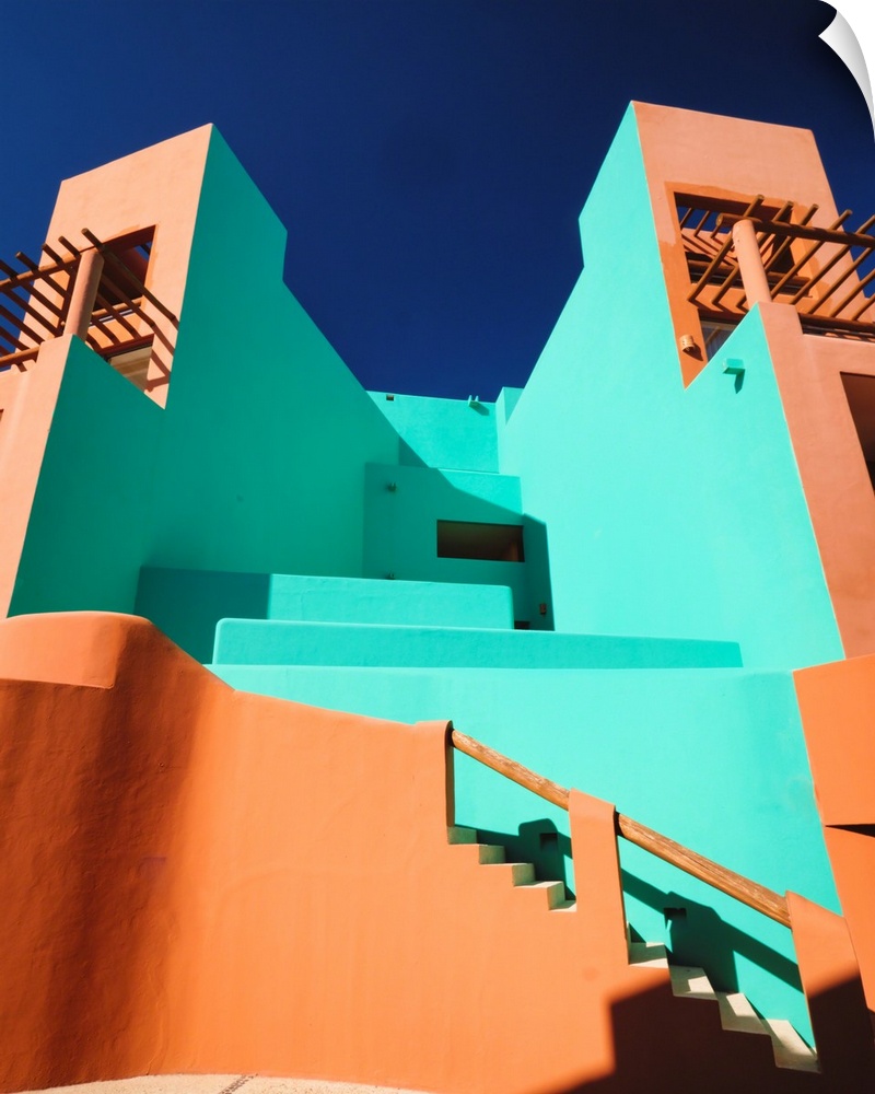 <p>Low angle view of colorful adobe style buildings, Cabo San Lucas, Baja California Sur, Mexico.</p>
