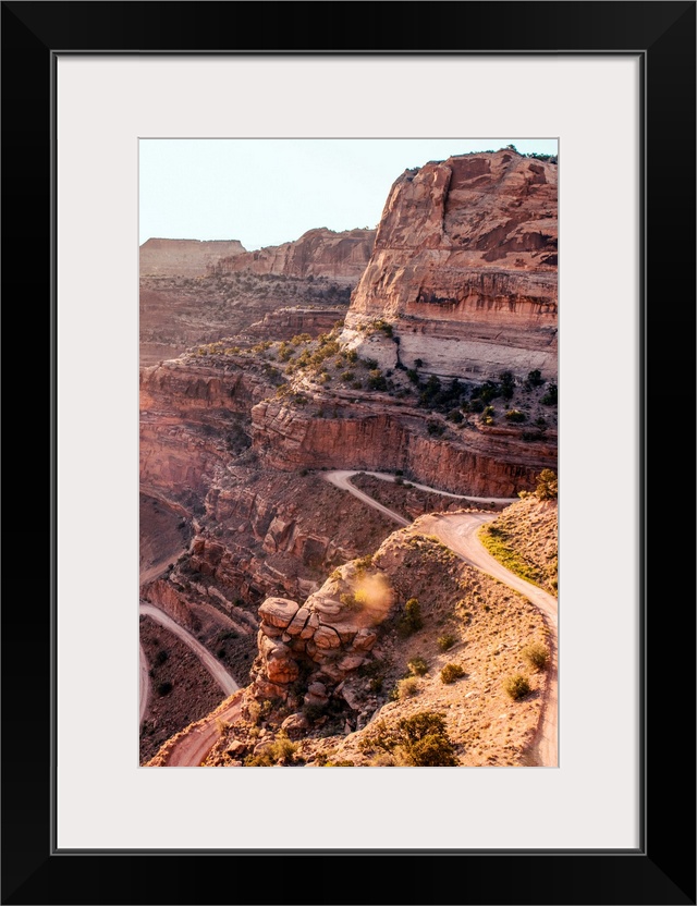 <p>Hairpin turns on Shafer Trail, a dangerous sheer road on the cliffs in Canyonlands National Park, Moab, Utah.</p>