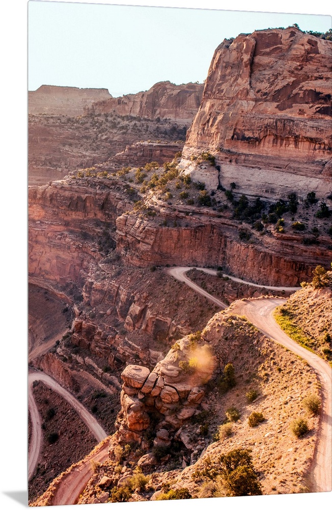 <p>Hairpin turns on Shafer Trail, a dangerous sheer road on the cliffs in Canyonlands National Park, Moab, Utah.</p>