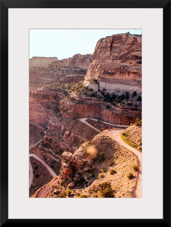 <p>Hairpin turns on Shafer Trail, a dangerous sheer road on the cliffs in Canyonlands National Park, Moab, Utah.</p>