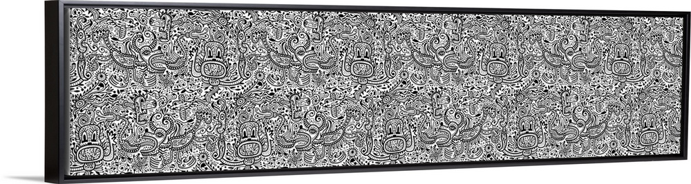 <p>Contemporary mural artwork of monsters and other abstract figures in a confusion of monochromatic patterns.</p>
