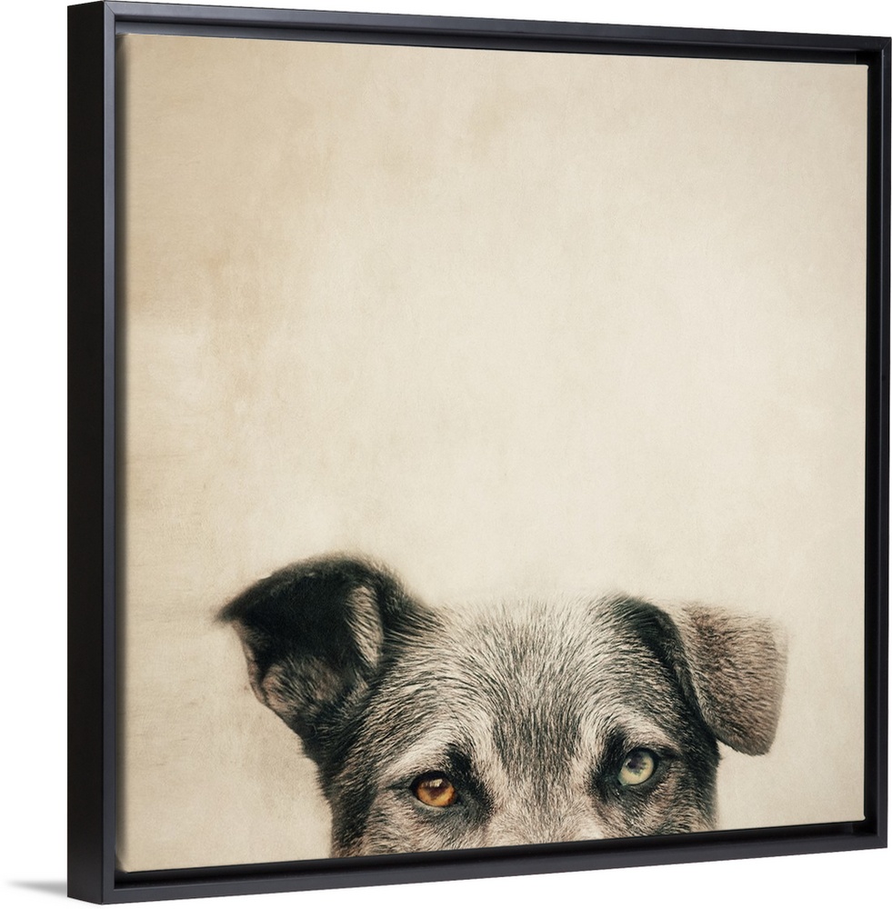 <p>An artistic photograph of a half portrait of a dog against beige background.</p>