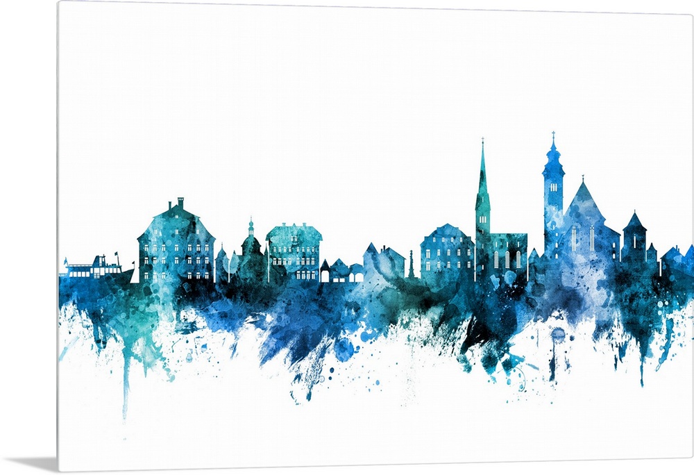 <p>Watercolor art print of the skyline of Hallstatt, Austria.</p>