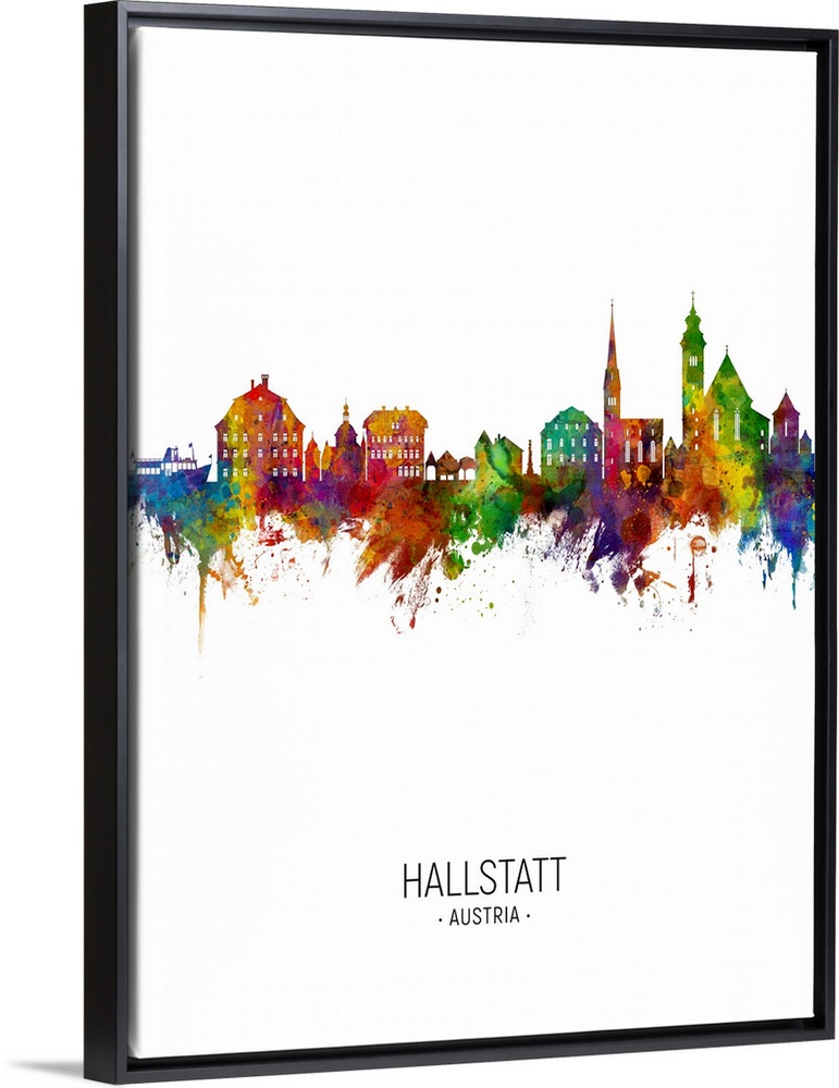 <p>Watercolor art print of the skyline of Hallstatt, Austria</p>