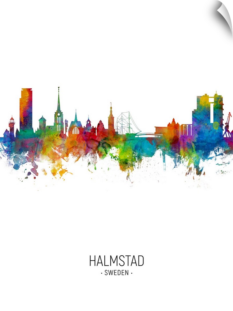 <p>Watercolor art print of the skyline of Halmstad, Sweden (Sverige)</p>