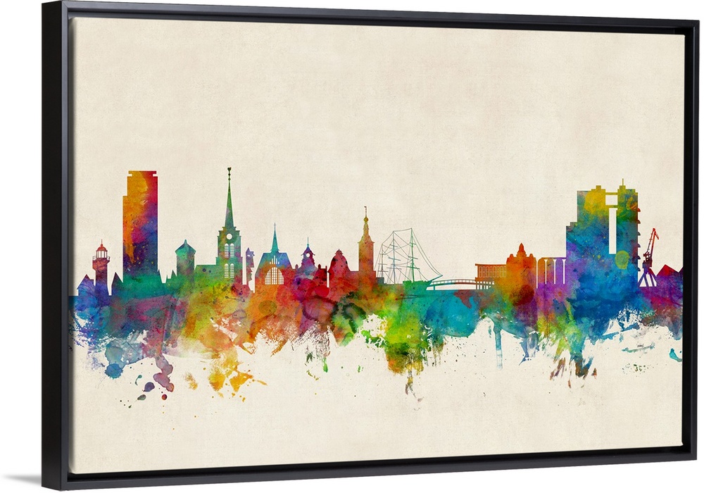 <p>Watercolor art print of the skyline of Halmstad, Sweden (Sverige).</p>