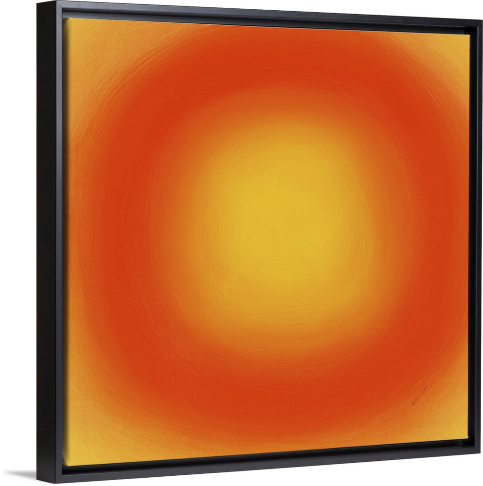 <p>A contemporary abstract painting of an orange circle with gradating green circles moving concentrically outward.</p>