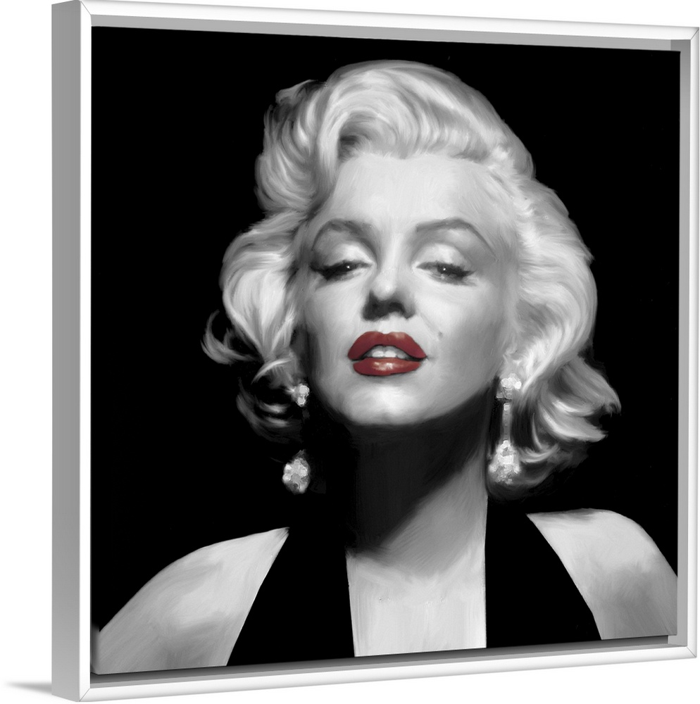 <p>Black and white image of Marilyn Monroe with red lipstick.</p>